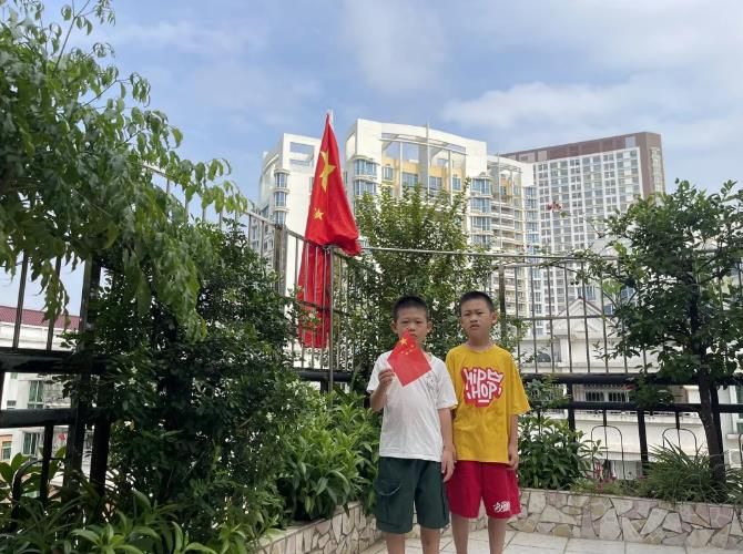 早晨八点的阳光还带着几分温柔,我便被窗外叽叽喳喳的声音扰醒。掀开窗帘一看,两个小身影正踮着脚在花园里忙活——读三年级的大孙子扛着一根裹着红布的钢竿,刚上一年级的小孙子则捧着叠得方方正正的五星红旗,小脸蛋上满是认真。