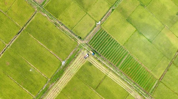 收割时节,联合收割机在金色海洋中驰骋,轰鸣声与稻谷的碰撞声交织成丰收的交响。土地流转让耕种更高效,文旅融合让收获更丰厚,在政府“农旅融合”政策推动下,这片稻田不仅是粮食产地,更成为传承客家文化、展示现代农业发展的窗口。田埂上,农户们的笑脸与金黄稻穗相映,眼中满是收获的喜悦与对美好生活的憧憬。
