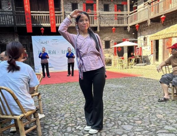 燕翼围的青砖见证她的成长,古镇的溪流聆听她的歌声,阿梅就像一朵盛开在太平古镇的客家幽兰,以歌声传客家之韵,以舞姿展客家之美,用鲜活的生命力诠释着客家女子的柔情与坚韧,用满腔热忱书写着客家文化的传承与绽放,成为太平古镇里最动人的风景,也让客家文化的芳华在岁月里愈发璀璨生辉。每逢表演落幕,她总会以一曲轻快歌舞收尾,用灵动舞姿邀约四海宾客探访杨村,走进太平古镇感受烟火古韵,驻足乌石围触摸围屋沧桑,漫步太平桥静赏溪畔风光,亦可奔赴蔡屋古榕聆听岁月絮语,徜徉万亩稻田与脐橙园拥抱田园诗意,让每一位来客都能沉醉于杨村的山水人文之美。