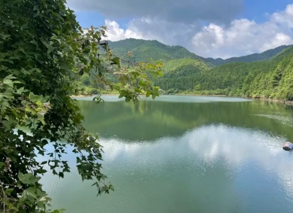 如今的陂坑水库,早已成为杨村标志性的自然景观,与青龙围、虎形屋等特色人文景点相映成辉,吸引着众多游客慕名而来。不同于寻常景区的热闹喧嚣,这里不设任何游玩项目,作为纯山泉饮用水源地,始终保持着原始纯净的处女地风貌。岸边草木繁茂,繁花点缀,清风携着草木与山泉的清新拂面,耳畔只有水波轻吟、鸟鸣啾啾,漫步湖畔,可见青山如黛、碧水含烟,官印峰的剪影倒映水中,天光云影与山水相融,静谧得让人忘却尘世烦扰。