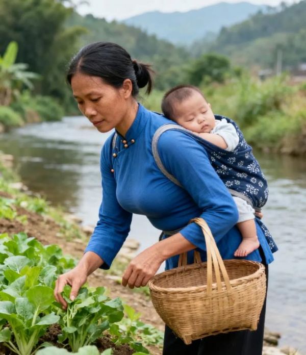 在杨村人的眼里,背着孩子的客家女子,是世间最美的身姿。那胸前背带交叉形勾勒出女人双乳的弧线,是母爱的独特标识;那微微佝偻的脊背,是为家庭撑起的一片天;那轻轻晃动的脚步,是岁月里最安稳的节奏。这份美,无关妆容与服饰,只关乎母亲的责任与担当。背带就像一条纽带,将母亲与孩子的心紧紧连在一起,也将客家女子勤劳、坚韧、温柔的品格,一代代传递下去。